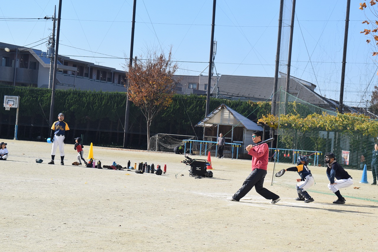 実は、大人は普段と逆のバッターボックスに入るのがルールとのこと。